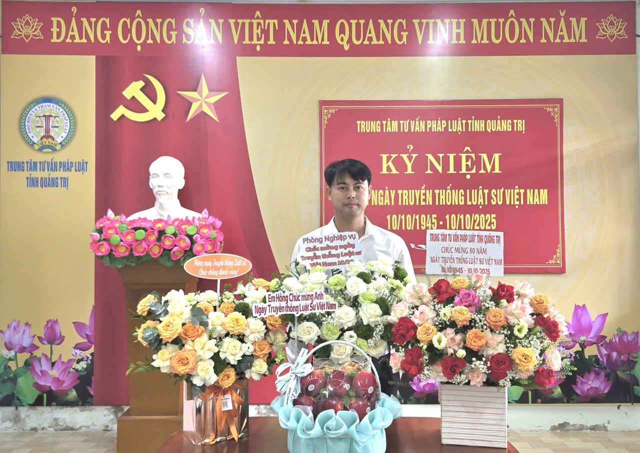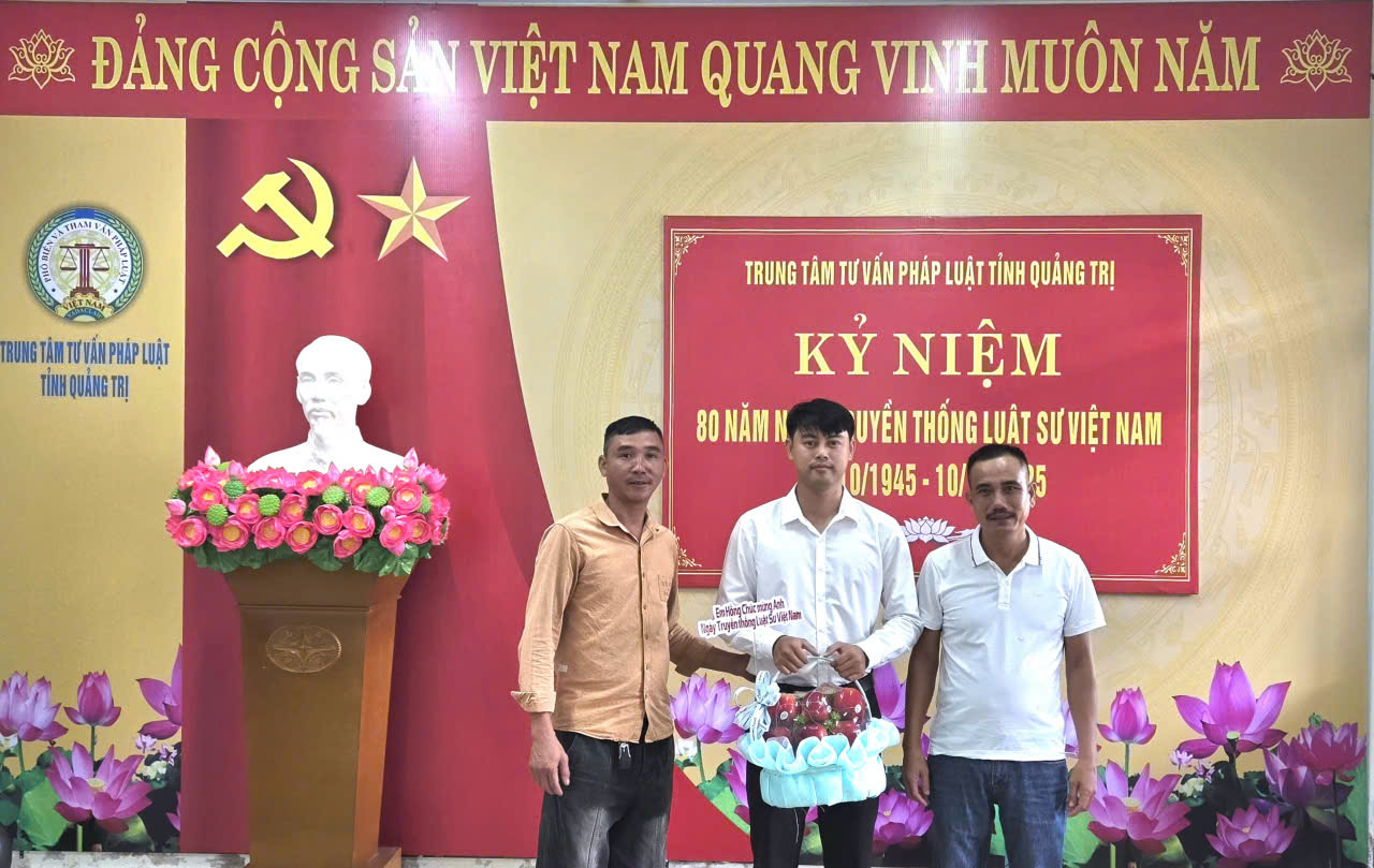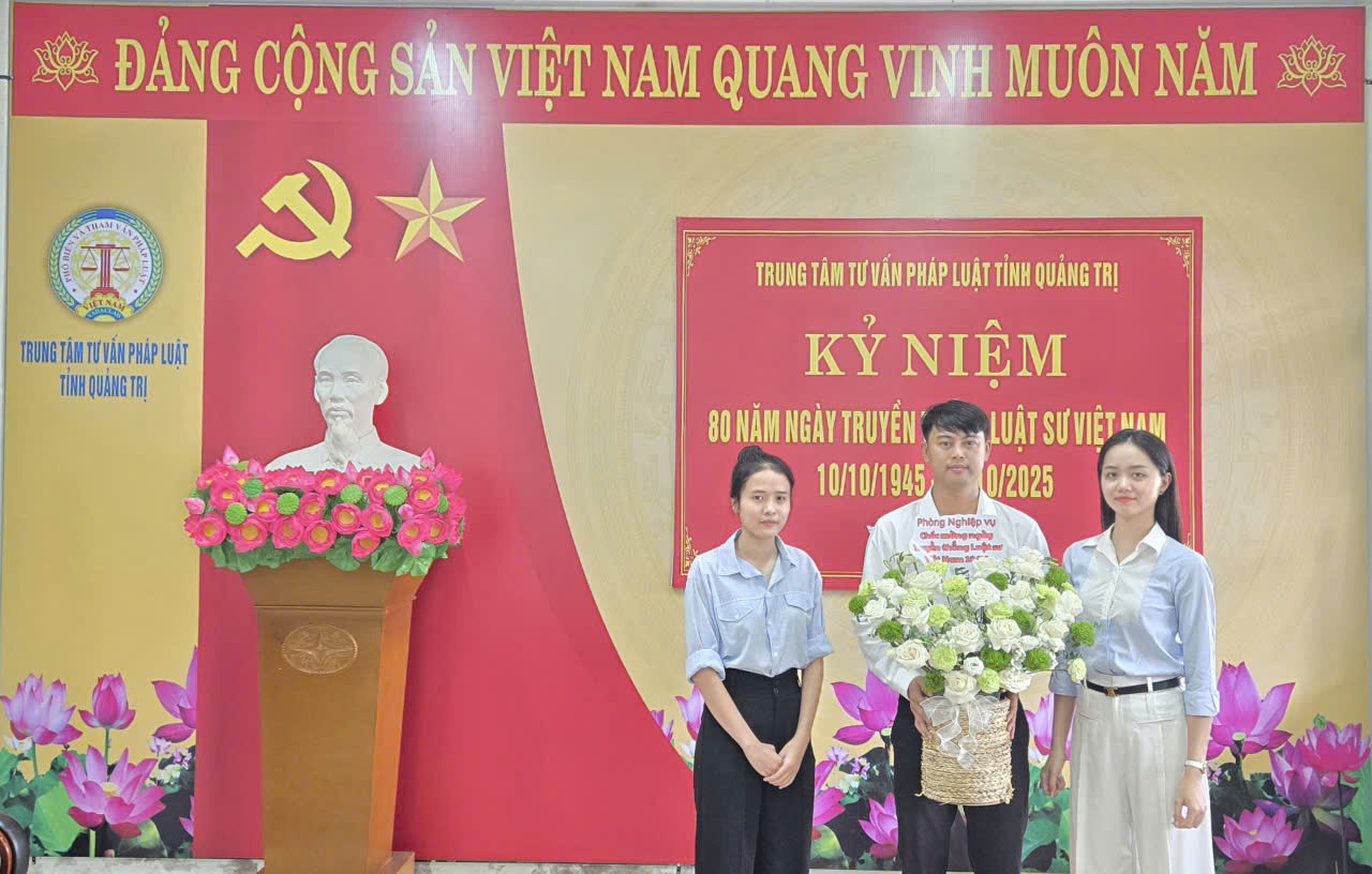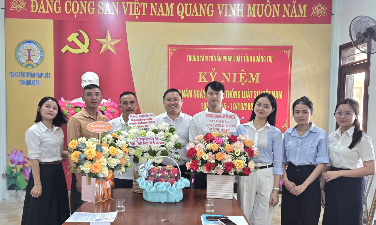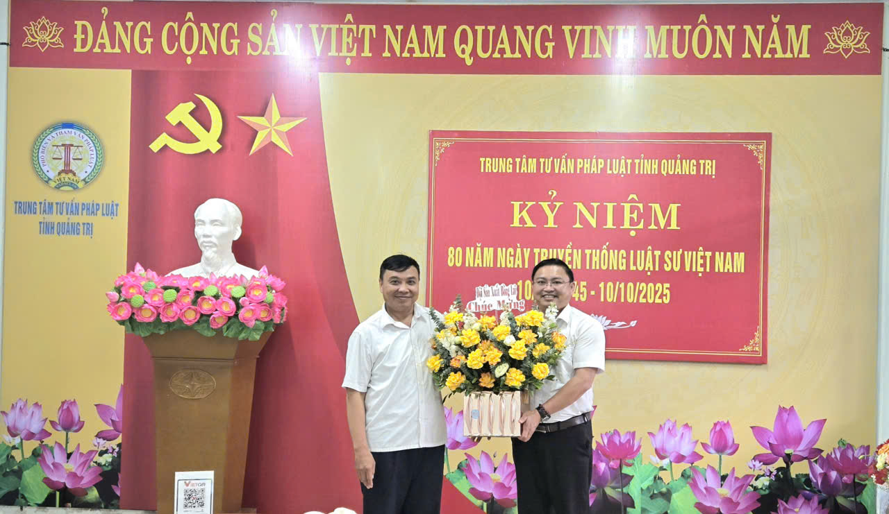 Ngày 10/10, Trung tâm Tư vấn Pháp luật tỉnh Quảng Trị tổ chức Hội nghị chào mừng 80 năm ngày truyền thống Luật sư Việt Nam 10/10/1945 – 10/10/2025 và tặng hoa chúc mừng.